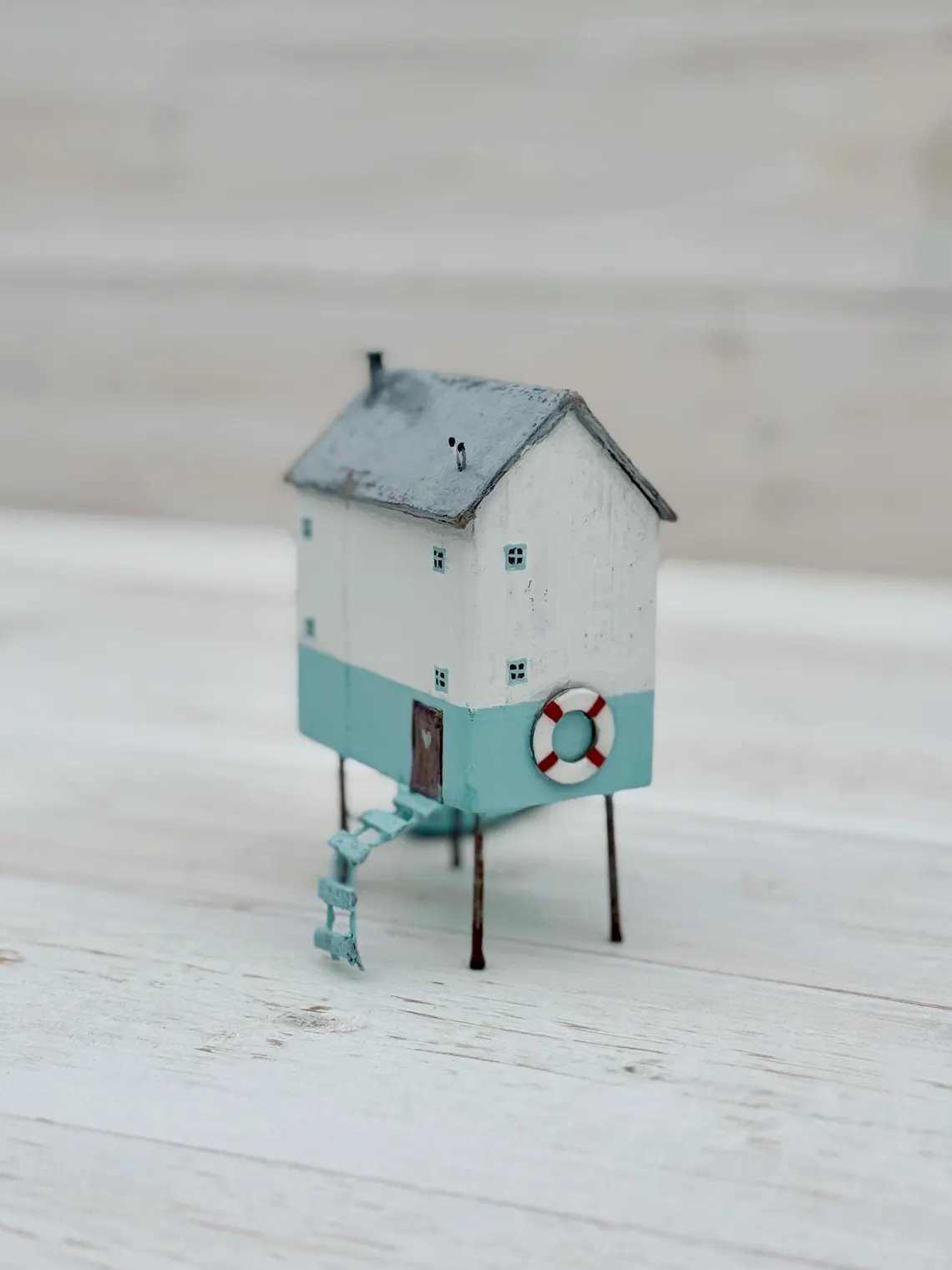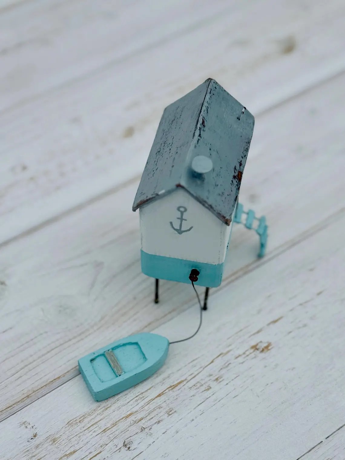 Handmade Miniature Beach House with Boat - Nautical Decor Set